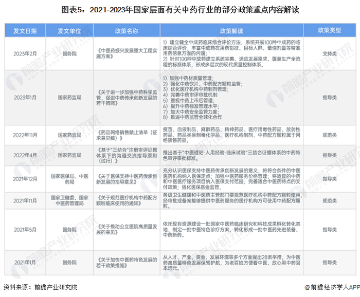 近年来,我国颁布多项政策促进我国中药行业发展。尤其是在新冠疫情常态化防控背景下,中药的传统医学价值越发珍贵,国家和社会对中药行业也更加关注。国家层面颁布的具体政策如下: