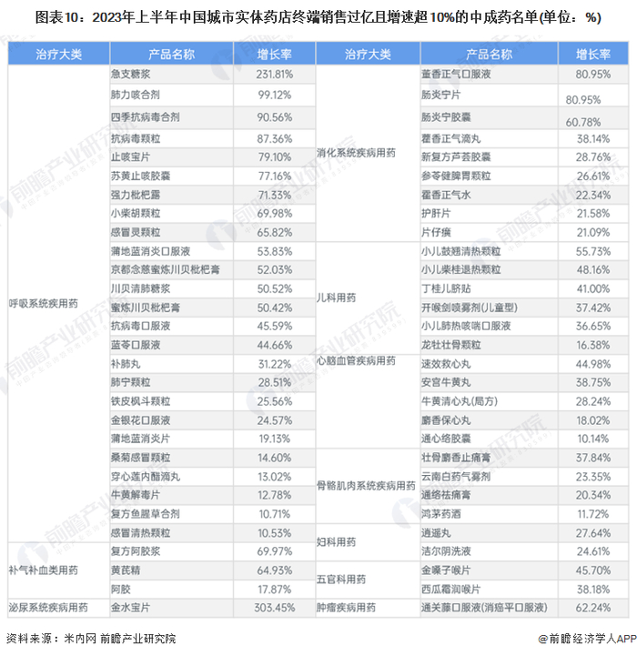 从销售额看,58个独家中成药2023上半年在中国城市实体药店终端的销售额合计超过150亿元,肠炎宁片、片仔癀(片仔癀)、京都念慈菴蜜炼川贝枇杷膏(京都念慈菴总厂)、连花清瘟胶囊、急支糖浆、舒筋健腰丸(广州白云山陈李济药厂)、复方阿胶浆7个品种超5亿元。