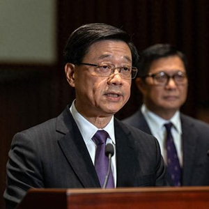 3月19日,香港特区立法会通过《维护国家安全条例草案》后,香港行政长官李家超出席新闻发布会 图片来源:视觉中国
