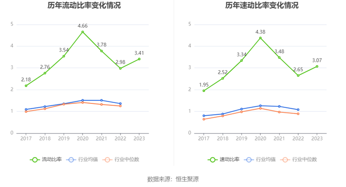 2023年,公司流动比率为3.41,速动比率为3.07。