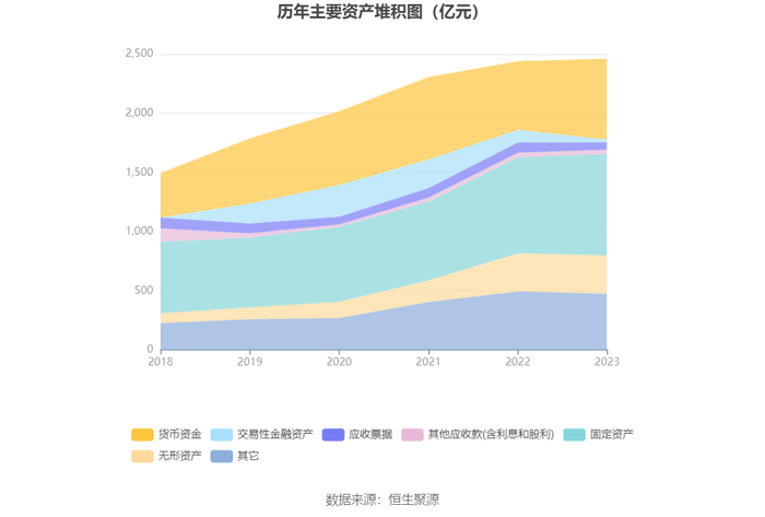 资产重大变化方面,截至2023年年末,公司货币资金较上年末增加18.14%,占公司总资产比重上升4.05个百分点;交易性金融资产较上年末减少79.44%,占公司总资产比重下降3.51个百分点;固定资产较上年末增加5.40%,占公司总资产比重上升1.49个百分点;在建工程较上年末增加29.27%,占公司总资产比重上升0.96个百分点。