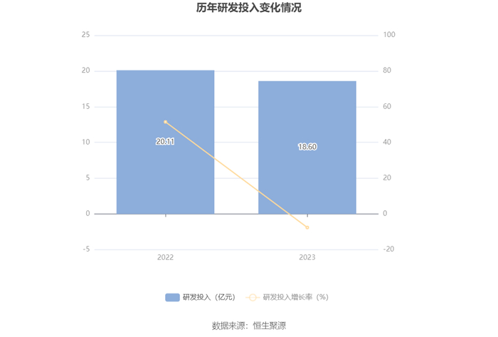 2023年全年,公司研发投入金额为18.60亿元,同比下降7.55%;研发投入占营业收入比例为1.32%,相比上年同期下降0.20个百分点。此外,公司全年研发投入资本化率为0。