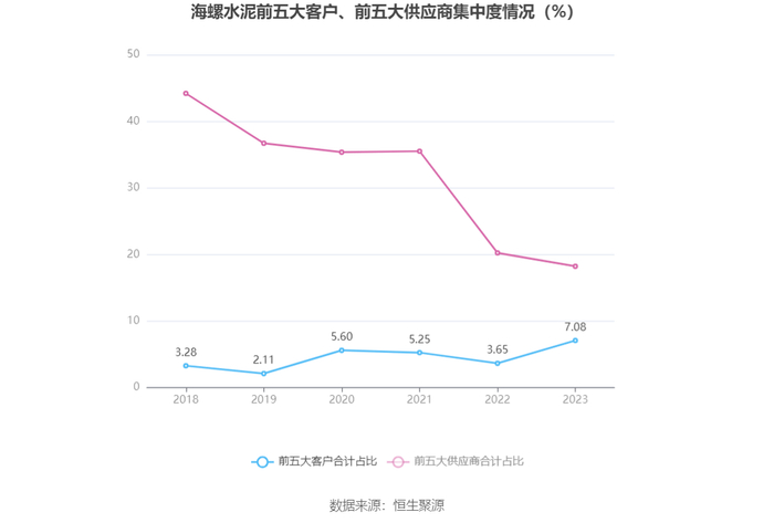 分产品来看,2023年公司主营业务中,建材行业(自产品销售)-42.5级水泥收入609.17亿元,占营业收入的43.20%;建材行业(自产品销售)-32.5级水泥收入102.76亿元,同比下降11.24%,占营业收入的7.29%;建材行业(自产品销售)-熟料收入67.41亿元,同比下降31.74%,占营业收入的4.78%。