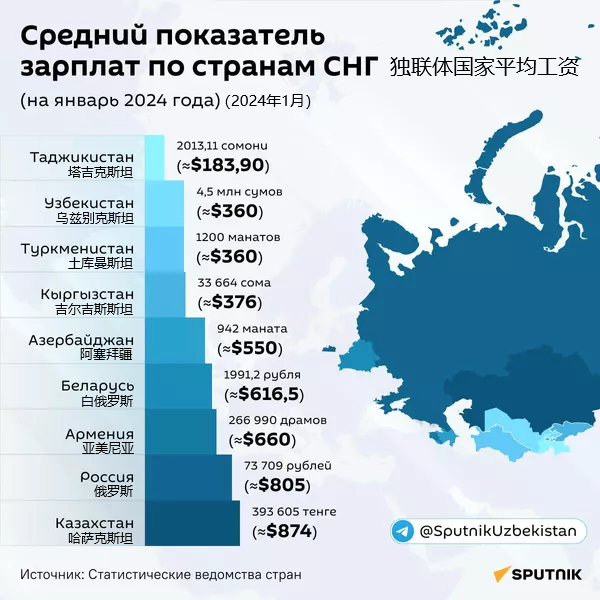 中亚国家平均工资多少钱?