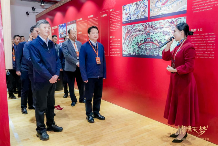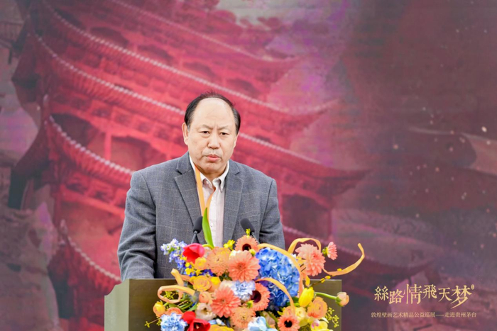 杨秀清表示,多年来,茅台集团始终保持着对公益慈善事业的关注和支持,在为社会提供高质量产品的同时,坚定履行社会责任。去年,茅台集团捐赠善款支持敦煌石窟的保护,体现了国有企业对保护人类文化遗产的高度重视和责任担当。今天,茅台集团为了办好此次展览,从财力、物力、人力上又给予了大力支持,使辉煌灿烂的敦煌石窟艺术得到很好的展示。此次巡展呈现的敦煌石窟壁画精品,是通过现代数字技术复制还原的敦煌石窟艺术经典作品。展品完整保存了敦煌石窟艺术的信息,真实地再现了敦煌艺术的神韵,大家可以近距离感受敦煌文化的博大精深,体会科学技术与文化遗产深度融合的魅力。