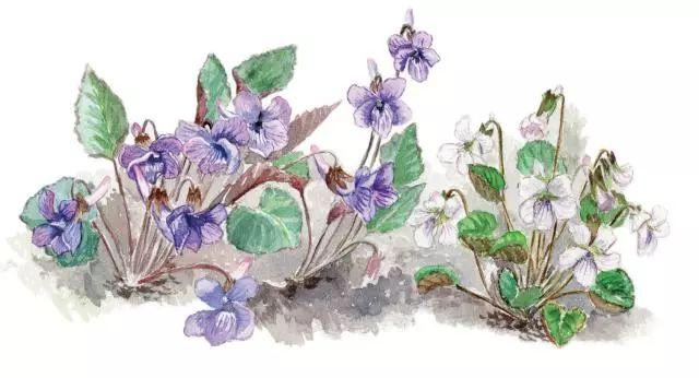 在这样的季节里,我们难得会把注意力从满枝的鲜花中转移到水泥路缝、墙角、荒地和只有一点点绿色的草丛中。而此时这些角落里有些奇妙的事情正在发生,一丛丛卷在一起皱巴巴的嫩叶正迎着温暖的阳光伸展开,这些叶子黄里带红,再细看,有垂着头的纤细花梗,全盘在叶子下。在不经意间,叶子全展开成小铲子的形状,叶梗也从叶丛间弹起,将一朵朵小紫花奉出。这些孱弱的小花带着沉着的紫色,虽不及枝条上的繁花华丽,却是我最爱的春日风景,它们就是早开堇菜和紫花地丁。