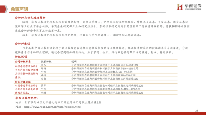 本订阅号为华西证券军工团队设立及运营。本订阅号不是华西证券研究报告的发布平台。本订阅号所载的信息仅面向华西证券的专业投资机构客户,仅供在新媒体背景下研究观点的及时交流。本订阅号所载的信息均摘编自华西证券研究所已经发布的研究报告或者是对已发布报告的后续解读,若因对报告的摘编而产生歧义,应以报告发布当日的完整内容为准。