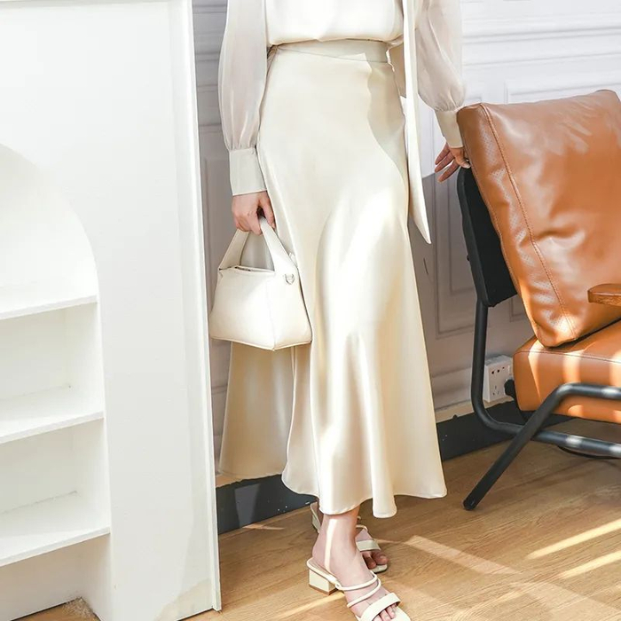 如果说30+的通勤女性需要一件提升个人魅力的单品,小视一定首推缎面半裙。