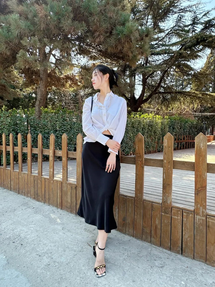 要说买缎面裙,一定要挑一条质感和垂感都在线的,比如今天要给大家推荐的这条缎面鱼尾半裙。