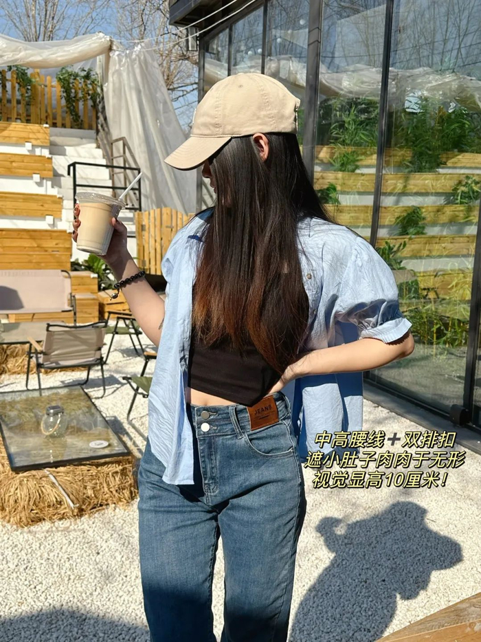 她还说,以前买牛仔裤,总想着像小脚裤这种越细的越好,后面才发现,能修饰腿型的裤子才是yyds!