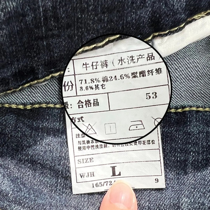 这里科普一个小知识点:正宗的牛仔布,一定是棉质的(且含量越高越好)。