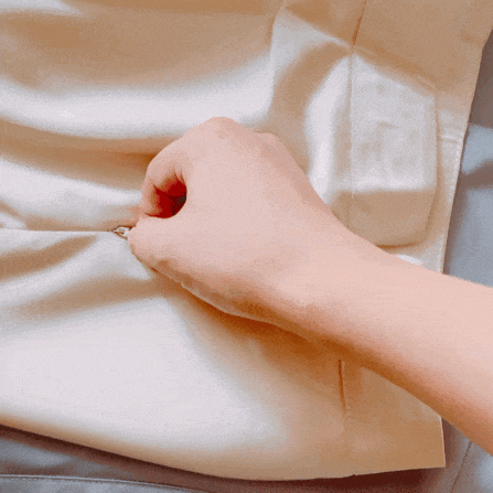 手感非常接近真丝,摸上去嫩滑细腻,并自带凉感,天热了坐办公室里,穿着这条裙子简直太舒服了!