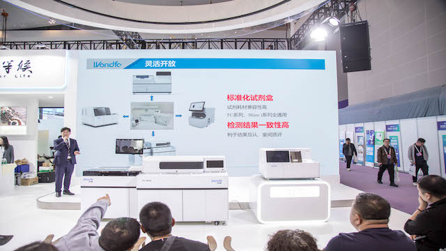 这次大会期间,第一财经记者注意到,针对化学发光免疫分析,一些国产品牌也发布了发光高速机。