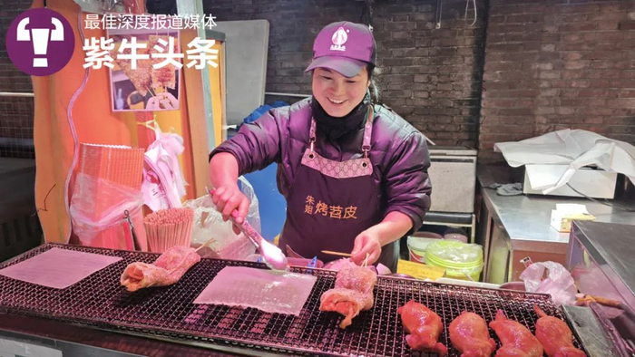朱姐烤苕皮摊主朱南南接受扬子晚报紫牛新闻记者采访