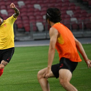 当日,中国国家男子足球队在新加坡国家体育场进行赛前训练。21日,中国队将在2026年世界杯预选赛36强赛中客场对阵新加坡队。