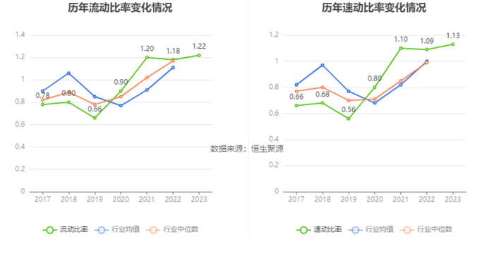 2023年,公司流动比率为1.22,速动比率为1.13。