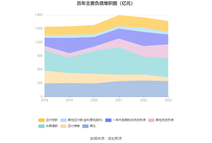 负债重大变化方面,截至2023年年末,公司一年内到期的非流动负债较上年末减少30.24%,占公司总资产比重下降2.94个百分点;其他流动负债较上年末增加32.55%,占公司总资产比重上升1.96个百分点;应付债券较上年末减少38.41%,占公司总资产比重下降1.52个百分点;其他应付款(含利息和股利)较上年末减少38.84%,占公司总资产比重下降1.07个百分点。