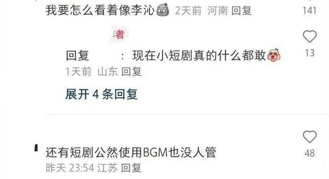 这部擅自P图李沁的短剧只是短剧制作侵权的冰山一角,因被P图的为知名女演员,因此很快被网友及粉丝发现且有了快速的回应。不少网友表示,短剧中侵权的问题颇为常见,比如随意使用有版权的音乐,此外还有网友在短剧上刷过到过韩剧的片段。