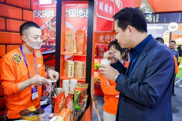 享有“国货之光”美誉的白象为本届春糖会带来了好几款新品:山菌老母鸡汤面、白玉萝卜牛肉汤面、大辣娇牛油火锅辣面……经销商和参展观众围着展台试吃,煮面的工作人员就没停下来过。尤其是大辣娇牛油火锅辣面,一阵阵麻辣牛油火锅香味飘散,年轻人们吃得呼儿嗨哟的不想离开。