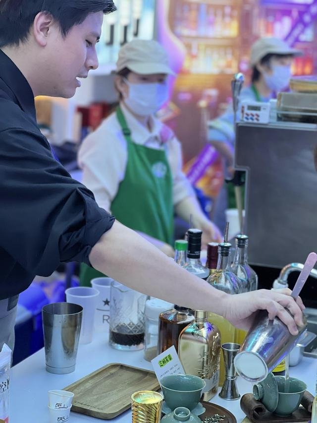 星巴克在现场带来了美式、拿铁、馥芮白等经典星巴克咖啡饮品,更是带去星巴克酒坊的调酒展演。调酒师以娴熟的调制技巧和热情的分享精神,演绎星巴克臻选咖啡和特调酒饮的创意组合。