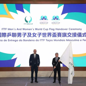 澳门特区政府体育局日前举办新闻发布会,宣布2024年澳门国际乒联男子及女子世界杯将于4月15日至21日在澳门举行。发布会上,国际乒联副秘书长穆尼尔·巴萨向澳门特区政府体育局局长潘永权移交了世界杯会旗。