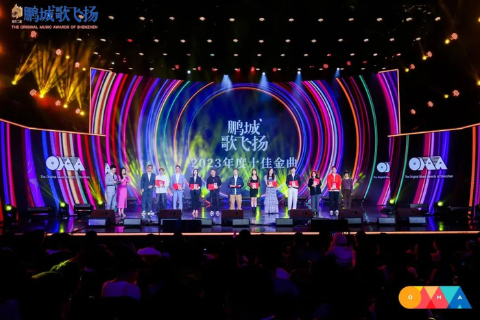 颁奖典礼首先颁发了“鹏城歌飞扬2023年度十佳金曲”。《心动专列》《我会等》《我的纸飞机》《密码人》《莉莉》《若你》《嘉禾望岗》《二手书店》《未命名的花》《和梦住一起》等10首歌曲经过层层选拔,最终脱颖而出。这些歌曲用音乐记录了时代的变化,通过音符唱响了深圳人的追梦故事。