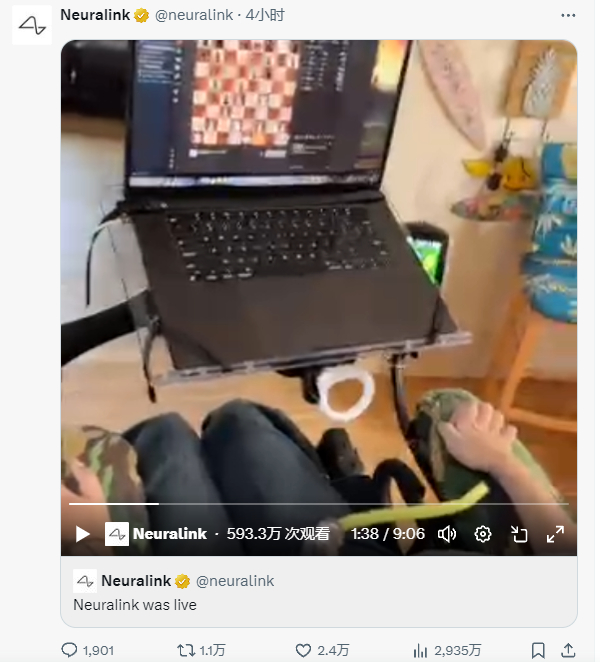 马斯克的脑机接口公司喜报:首试者能用意念下象棋、打游戏!