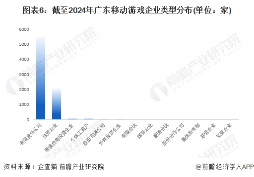 根据中国企业数据库企查猫,截至2024年2月,广东省存续和在业的移动游戏企业共5689家,广东省移动游戏企业以有限责任公司为主,截至2024年2月共有5504家;其次为独资企业有2084家。