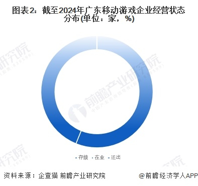 根据中国企业数据库企查猫,截至2024年2月广东移动游戏行业的存续企业3195家,占总企业数56%;在业企业数2494家,占比为44%。