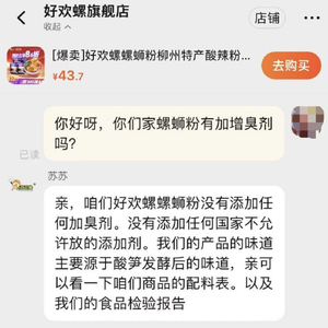 螺霸王食品旗舰店客服回应称:没有增臭剂,含少量添加剂,但都是符合要求的 。