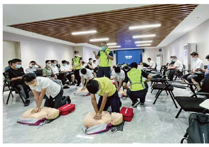 白皮书介绍,为有效控制服务空间内非正常死亡事件的发生,秉承对生命的敬畏与尊重的初心,万科物业陆续在服务的住宅小区中引入AED(自动体外除颤器)设备,并万科物业针对物业管家、安全员等一线面客的岗位,开展心肺复苏紧急救护的课程培训和实操练习,截至2023年底,万科物业在全国超过933个项目中已配置了AED设备1715台,多次成功挽救业主生命。
