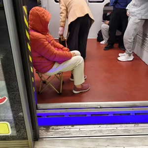 但地铁“板凳族”高峰常常和早晚高峰重合,地铁车厢内拥挤、没有座位的时候,最易出现自带小板凳的情况。