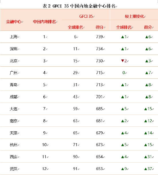 全球金融中心发展预期趋于稳定,评分提升整体放缓。全球金融中心整体平均得分上升1.62%,增速较上期有所放缓,但金融人士对金融中心的发展仍保持信心。GFCI研究表明,世界主要经济体经济前景已趋于稳定,各主要金融中心正加快在绿色金融、数字技术等领域改革,意图影响全球经济社会的发展进程。同时,全球金融中心排名结果呈现多样性。其中,58个金融中心排名上升,11个保持不变,52个有所下降。