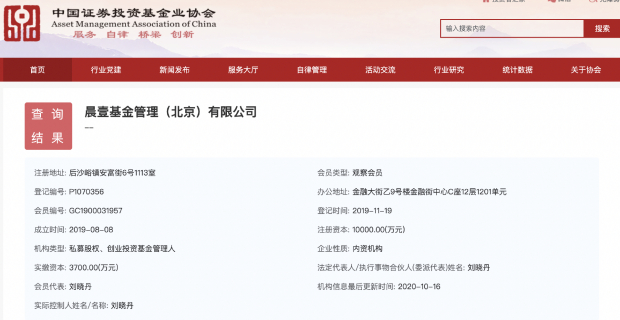 此次与张勇联手的大佬,正是素有“并购女王”之称的华泰联合证券原董事长刘晓丹。晨壹基金管理(北京)有限公司也是由她一手创立的私募机构,于2019年8月8日正式成立,并在2019年11月19日完成私募股权、创业投资基金管理人备案登记。
