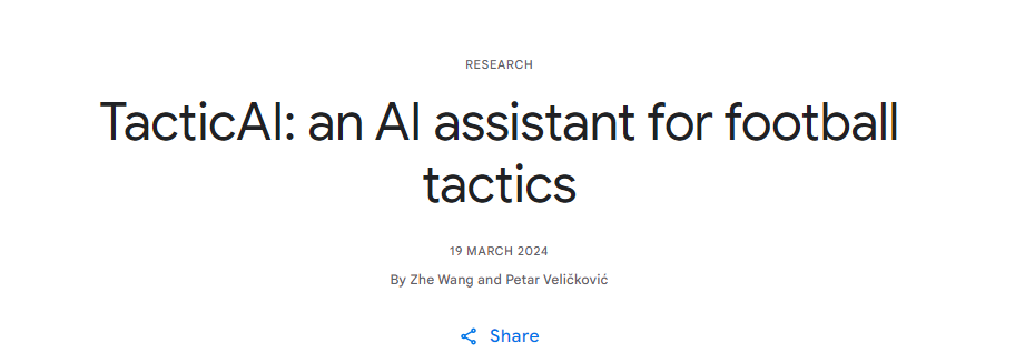 本周二,谷歌旗下的人工智能团队DeepMind就在官网上介绍了其目前正在研发的“AI足球教练”:TacticAI战术助手。