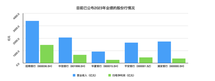 截至3月21日,A股9家上市股份行中,包括浦发银行在内,已有5家披露2023年年报或业绩快报,分别是招商银行、中信银行、平安银行、华夏银行。