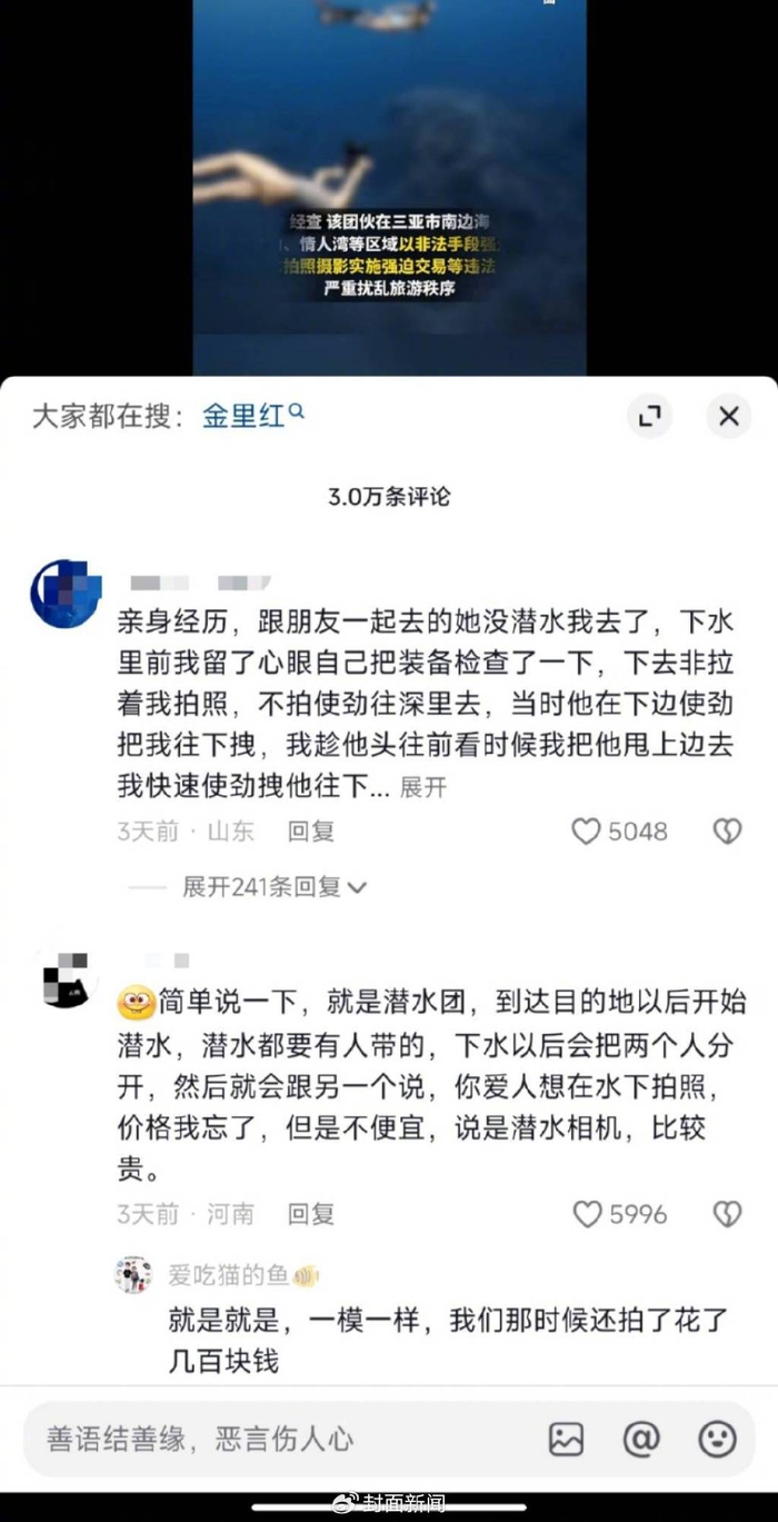 三亚征集“强迫潜水拍照交易”犯罪线索 游客讲述被强行推销经历