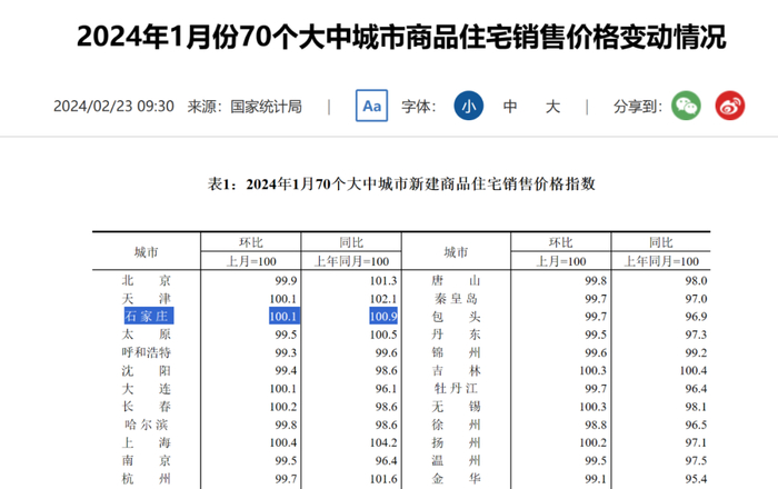 从数据上来看,国家统计局公布的数据显示,自2023年12月至2024年2月,石家庄市新建商品住宅销售环比和同比均实现上涨,符合首套房贷款利率下限恢复执行条件。