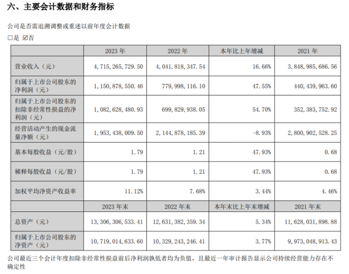挖贝网3月21日,东阿阿胶 近日发布2023年度报告,报告期内公司实现营业收入4,715,265,729.50元,同比增长16.66%;归属于上市公司股东的净利润1,150,878,550.46元,同比增长47.55%。