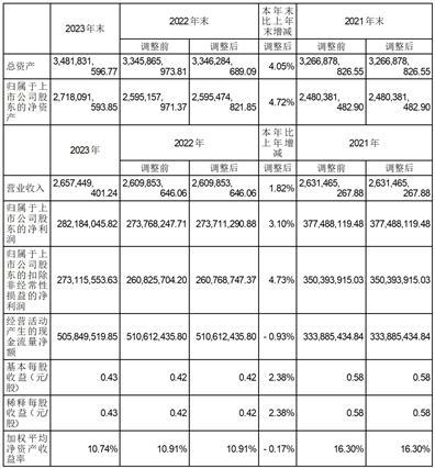 截至2023年12月31日,公司资产总额为人民币348,183.16万元,比期初增加人民币13,554.69万元;归属于上市公司股东的所有者权益合计人民币271,809.16万元,比期初增加人民币12,261.68万元。2023年度,实现营业收入人民币265,744.94万元,较上年度增加人民币4,759.58万元;实现合并财务报表范围内归属于全体股东的净利润为人民币28,218.40万元,较上年度增加人民币847.28万元。