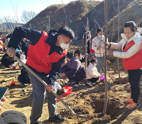 2023年3月12日,冀益携手·让爱萌芽—2023年“万人公益植树行”活动走进唐县,李洁翔(右)在现场参加植树活动。(资料图片) 受访者供图