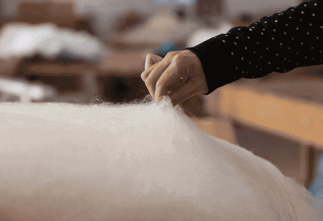 为了确保整张被子厚薄均匀,他们家还自主研发了一种恒定密度的专利技术。
