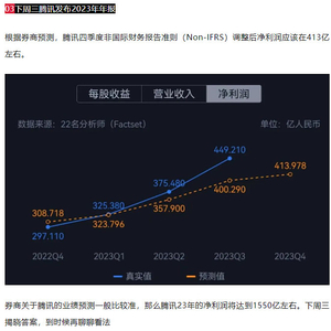 对于腾讯利润相对明牌,上周天文章写了四季度净利润大概在413亿左右,全年大概1550亿左右,实际情况是四季度426.81亿,全年1576.88亿。