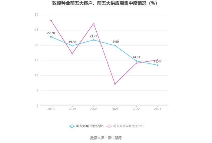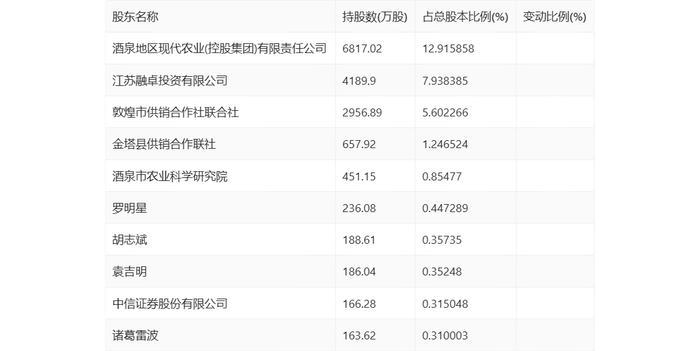 值得注意的是,根据年报数据,敦煌种业10.20%股份处于质押状态。其中,第一大股东酒泉地区现代农业(控股集团)有限责任公司质押5385.45万股公司股份,占其全部持股的79%。