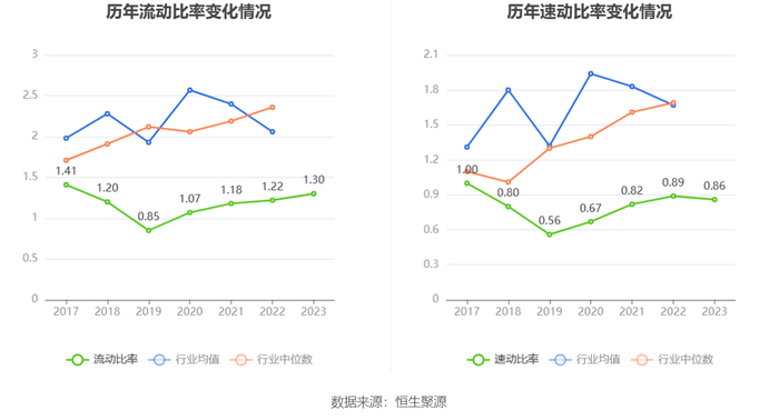 2023年,公司流动比率为1.30,速动比率为0.86。