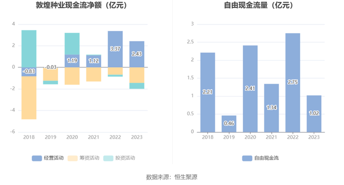 2023年,公司经营活动现金流净额为2.43亿元,同比下降28.09%;筹资活动现金流净额-1.44亿元,同比减少7620.09万元;投资活动现金流净额-5487.24万元,上年同期为-1820.29万元。
