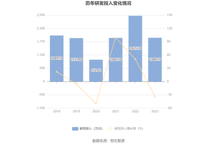 2023年全年,公司研发投入金额为1948.19万元,同比下降33.41%;研发投入占营业收入比例为1.68%,相比上年同期下降1.23个百分点。此外,公司全年研发投入资本化率为15.15%。