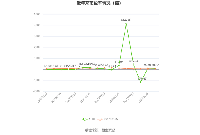 市盈率为负时,不显示当期分位数,会导致折线图中断。