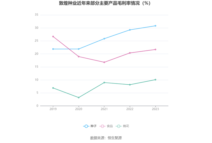 分产品看,种子、食品、棉花2023年毛利率分别为30.82%、21.70%、10.09%。