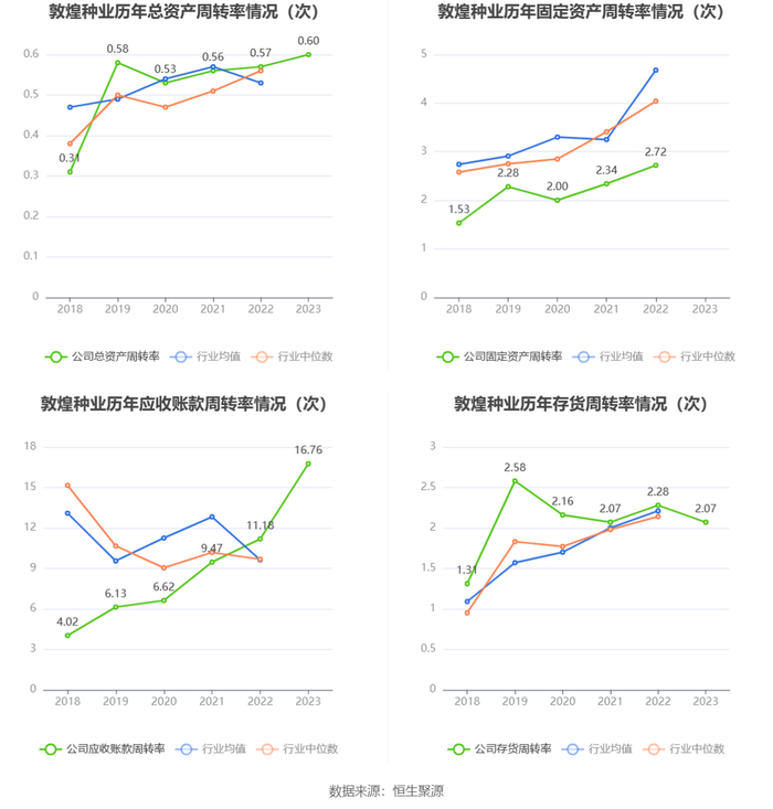 营运能力方面,2023年,公司公司总资产周转率为0.60次,上年同期为0.57次(2022年行业平均值为0.53次,公司位居同行业5/10);公司应收账款周转率、存货周转率分别为16.76次、2.07次。